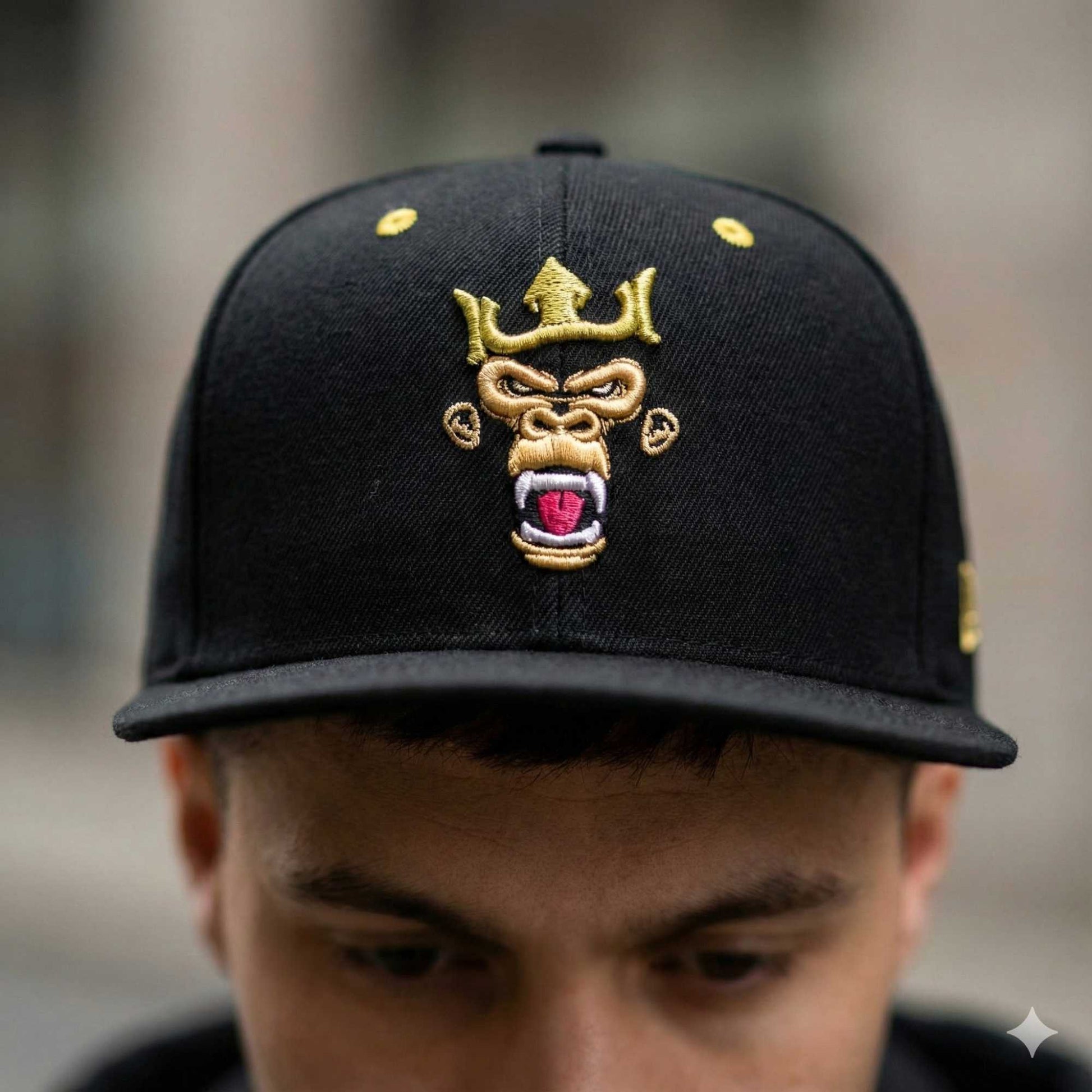 King of the Jungle Gorilla Snapback Hat - Black Embroidered Gorilla Cap with Crown | Streetwear & Hip Hop Style